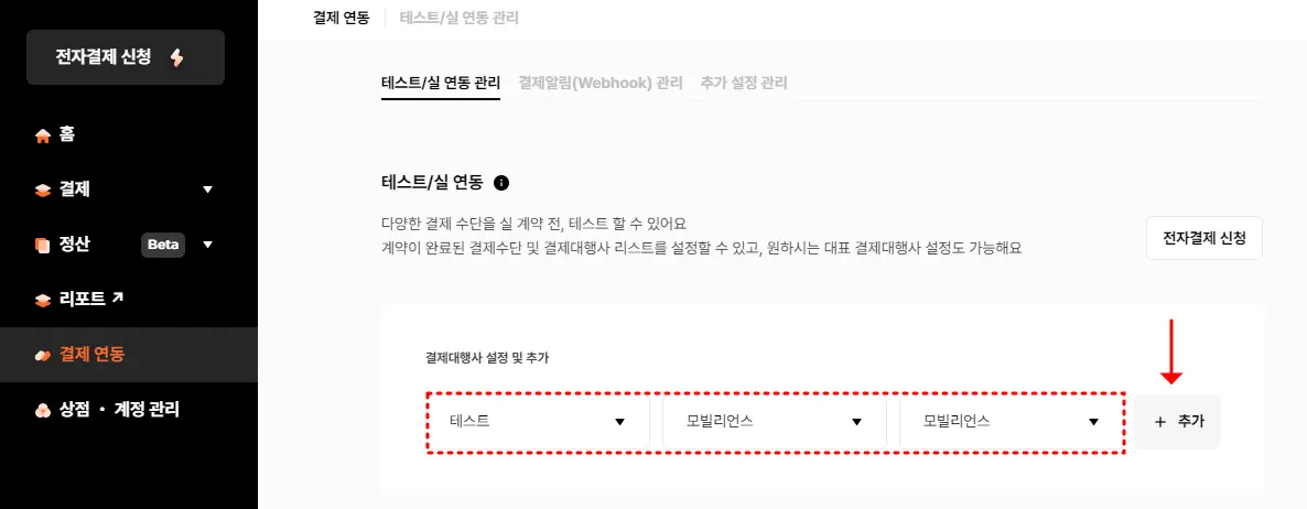 2. 테스트 모드 설정