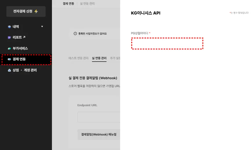 KG이니시스 'API( 폼페이) 방식'은 PG사를 통해 입점가능여부 확인이 우선적으로 필요합니다.