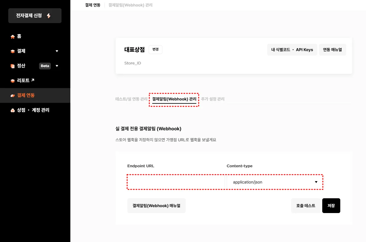 포트원 관리자콘솔> 결제연동 > 결제알림(Webhook)관리 > endpoint URL에서 웹훅 설정