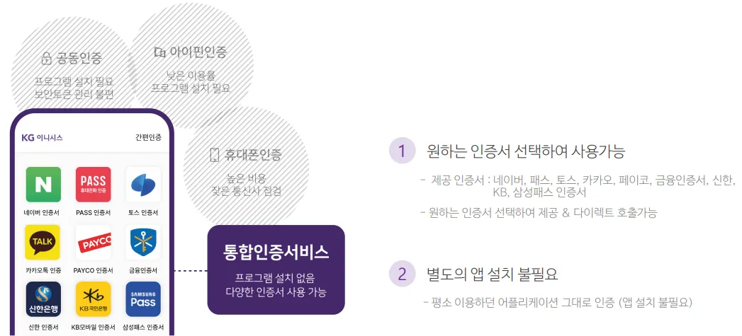1. 각 인증사에서 발급한 인증서를 이용하여 간편하게 간편인증이 가능해요!