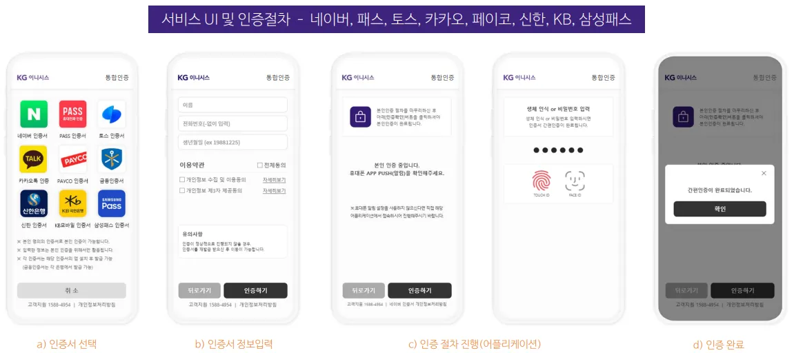 KG이니시스에서 제공하는 '통합인증 서비스'는 네이버, 카카오 등의 여러가지의 인증수단으로 통합적으로 인증을 진행하실 수 있는 서비스입니다!