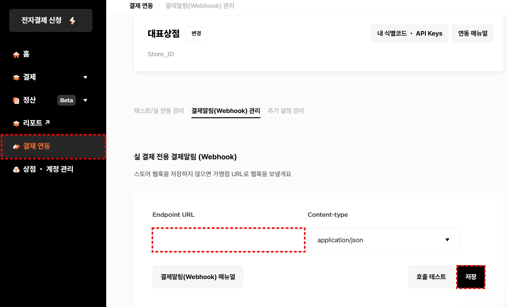 설정경로 : 포트원 관리자콘솔 > 결제연동 > 결제알림(Webhook) 관리