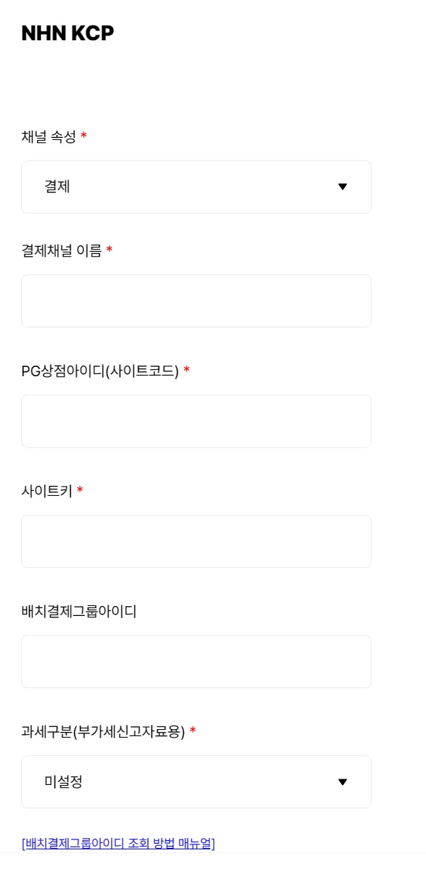 KCP 계약 후 발급받으신 상점정보로 입력해주세요