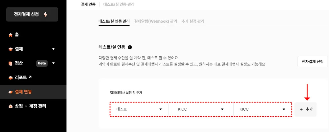 KICC(한국정보통신) 테스트 모드의 경우 실제 출금 되지 않습니다.
