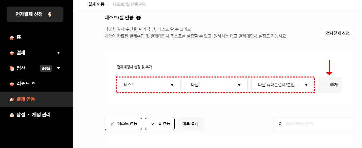 다날 정책상 계좌이체/가상계좌는 테스트 결제가 제공되지 않습니다. 계약 후 실제 상점아이디로 테스트를 해야 합니다.