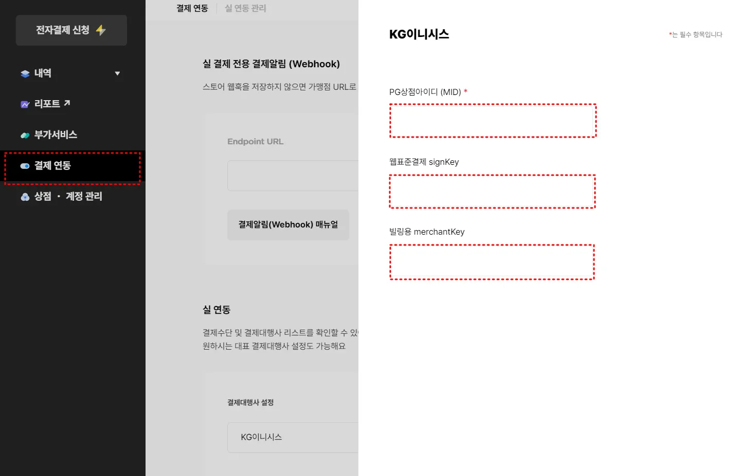 KG이니시스 'API( 폼페이) 방식'은 PG사를 통해 입점가능여부 확인이 우선적으로 필요합니다.