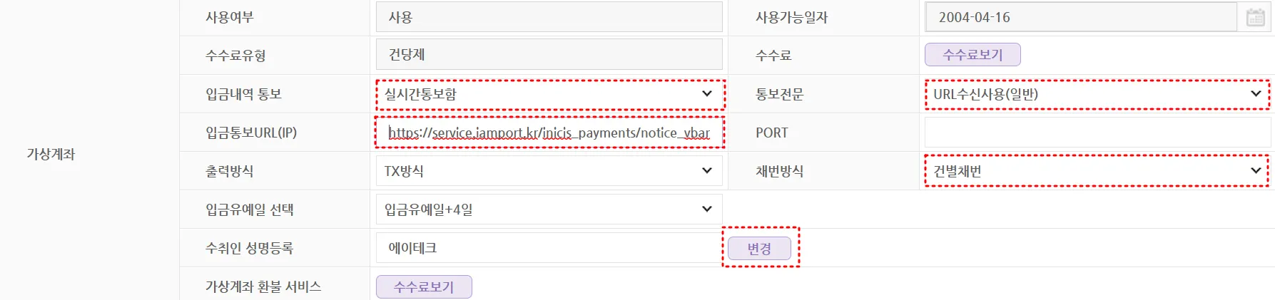 가상계좌 입금통보URL 설정 (PG사 → 포트원 서버 입금완료 통지)