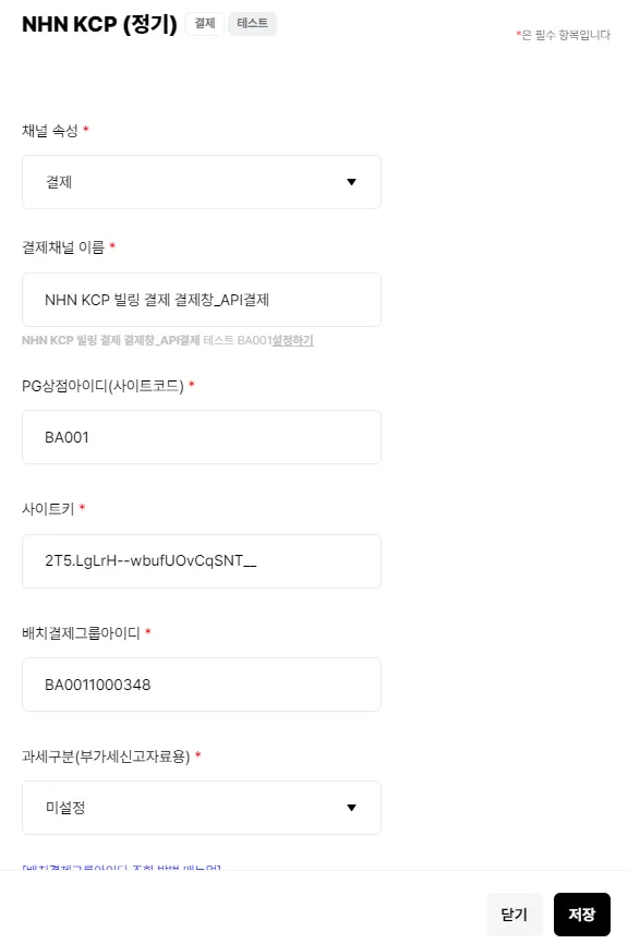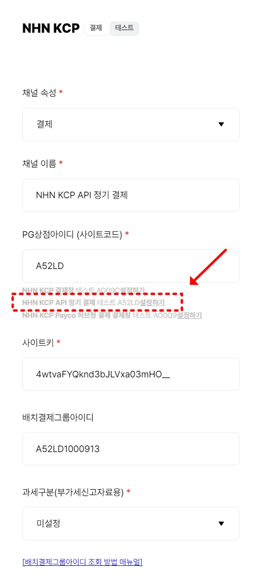 NHN KCP API 정기 결제 테스트 A52LD설정하기 클릭