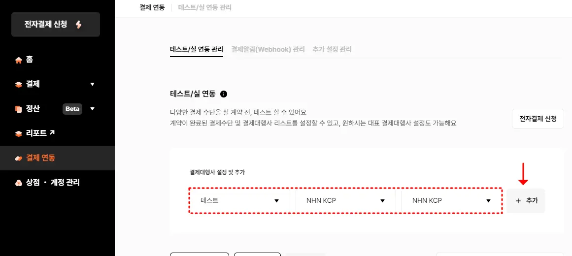 NHN KCP 결제창 테스트 A52LD 설정하기 클릭